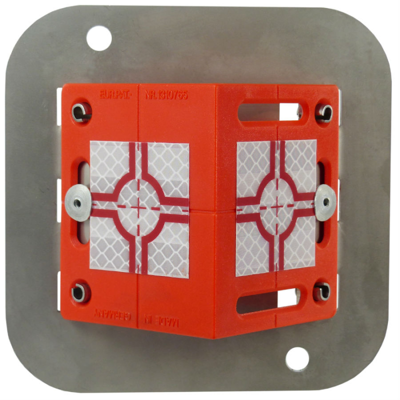 RSAM80r - RVS adapter voorzien van een hoekmeetmerk RS80 rood (met 2 reflecterende peilmerken 40 x 40 mm).